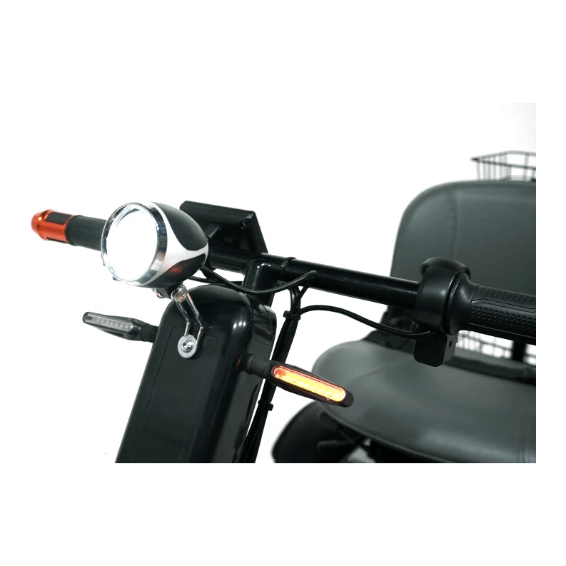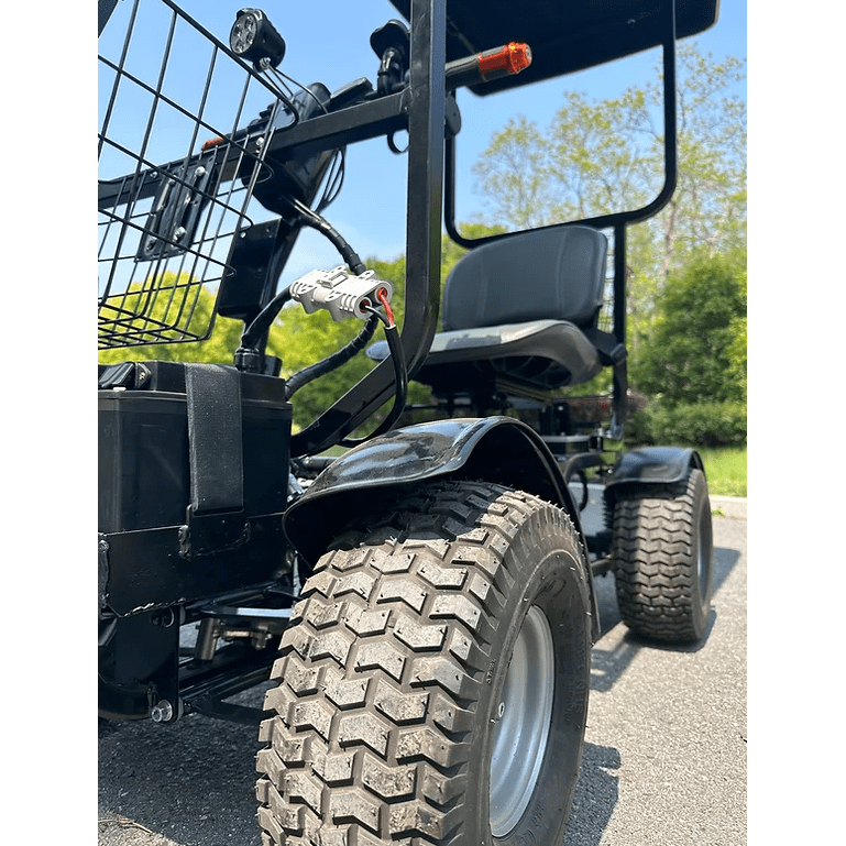 The Green Transporter Cheeta Ninja is a powerful, all-terrain mobility scooter designed for versatility and comfort. With a top speed of 14 mph, it boasts a 48V 1100W motor, independent ATV-like suspension, and turf tires for smooth rides on varied surfaces. Capable of handling inclines up to 35 degrees, it features a 25-mile range and can support up to 500 lbs. Equipped with a swivel seat, turn signals, mirrors, headlights, and three baskets for added convenience, the Cheeta Ninja offers a perfect blend of performance and practicality.